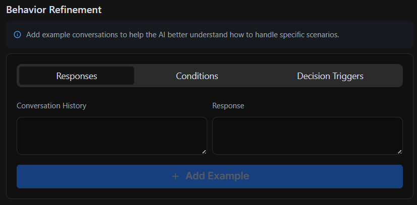 The Behavior Refinement section allows manual fine-tuning of how the AI handles **responses, conditions, and decision triggers **within the current node. This ensures the AI reacts appropriately in different conversational scenarios.