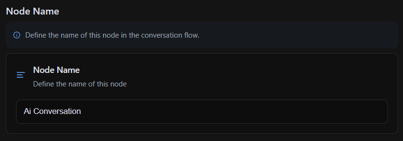 Regardless of the node type, every node in Plura AI contains key sections that define its behavior and interaction logic. These sections ensure consistency across workflows and allow for granular control over how the AI operates.Node Name
