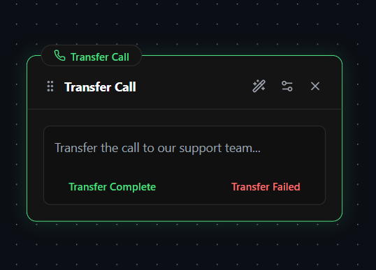 When the Transfer Call Node is triggered, the AI will:- Optionally provide a predefined response before transferring.